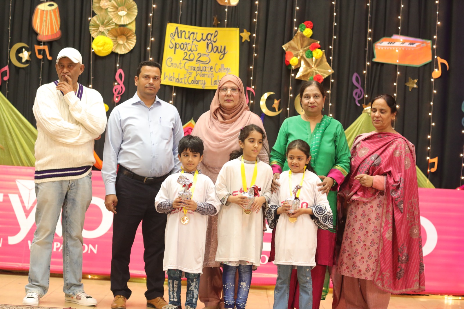 The annual Sports Day at Govt. Graduate College for Women, Wahdat Colony, Lahore, was a vibrant and energetic event, bringing together students and faculty for a day of fun, fitness, and competition. The event featured various sports, including races, tug-of-war and other athletic activities. Students participated enthusiastically, showcasing their talent and teamwork. The college principal and faculty members encouraged the participants, and winners were awarded medals and certificates. The day concluded with a spirit of sportsmanship and unity, making it a memorable occasion for everyone involved.