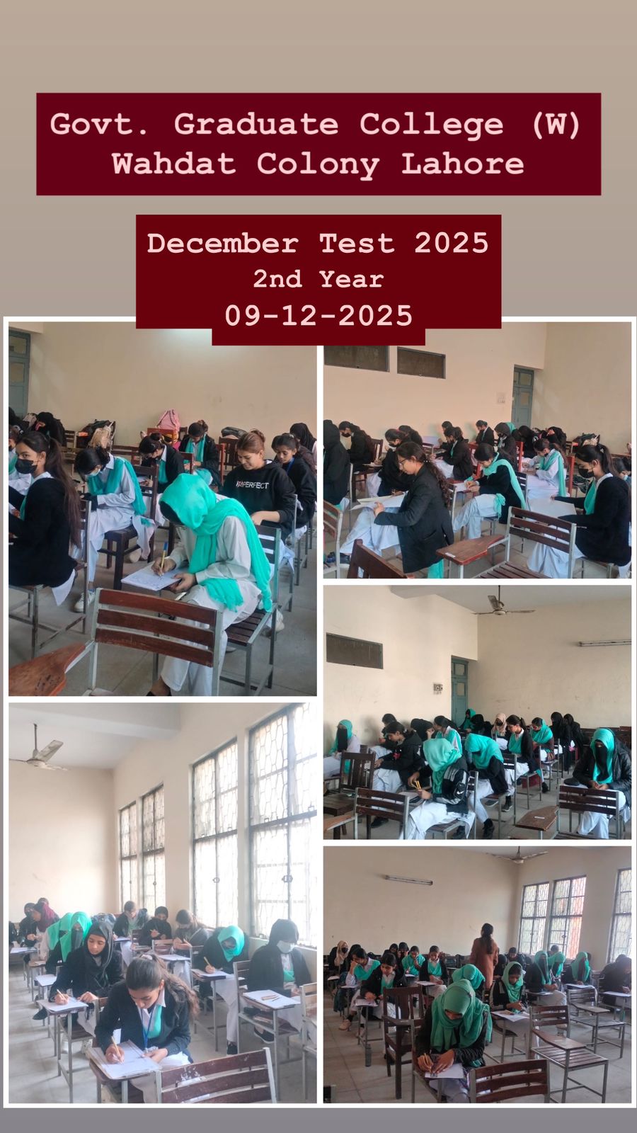 GOVT.GRADUATE COLLEGE FOR WOMEN WAHDAT COLONY,LAHORE. As per HED guidelines, conducting the test simultaneously across Punjab aims to provide students with a formal examination environment and better prepare them for the final board exams.