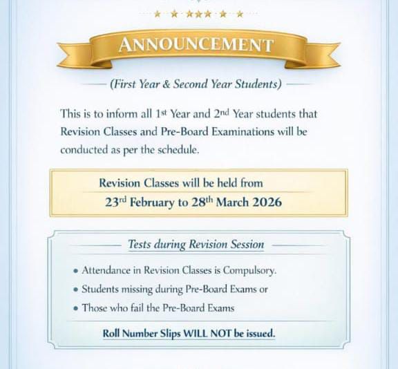 Announcement for Intermediate Part I & II students
